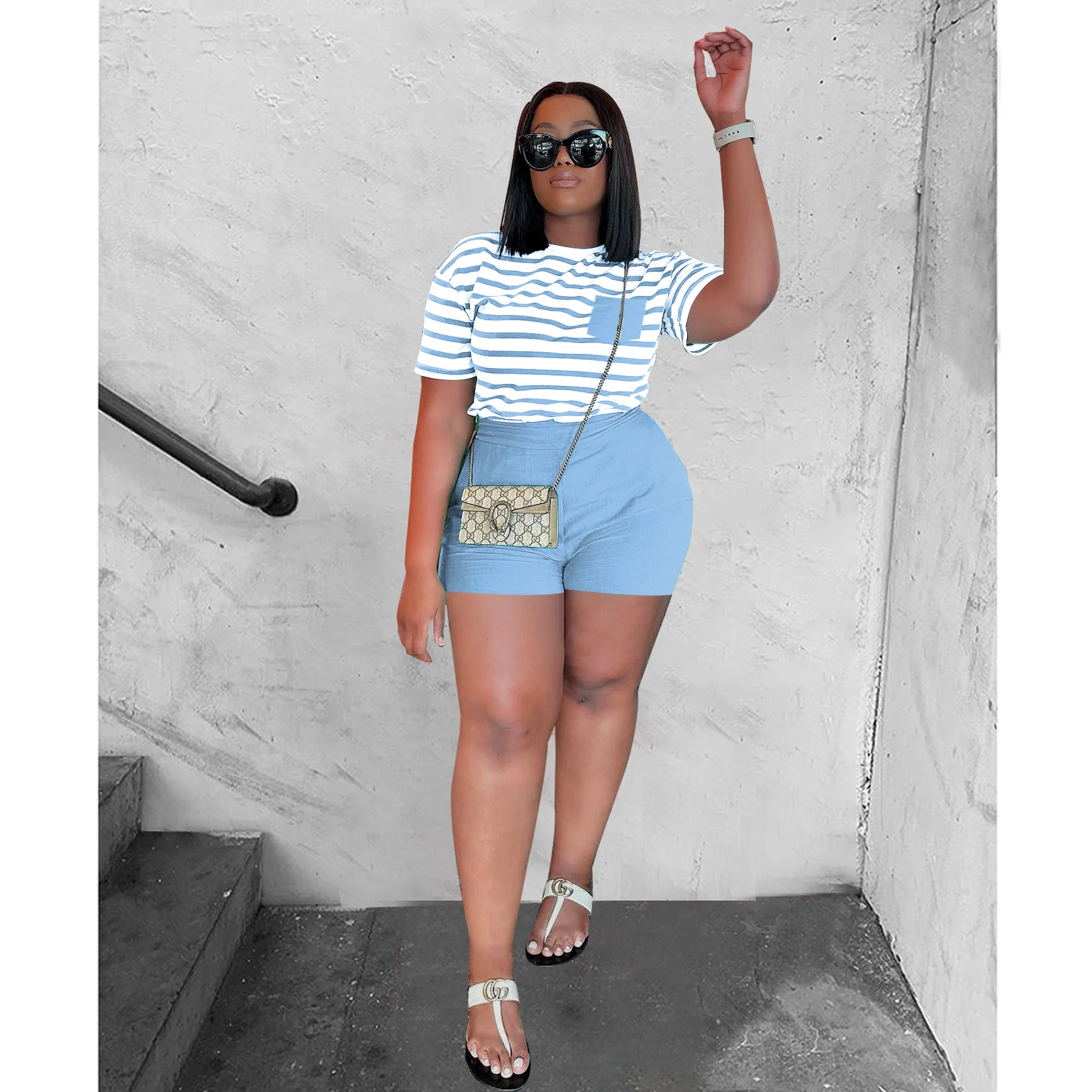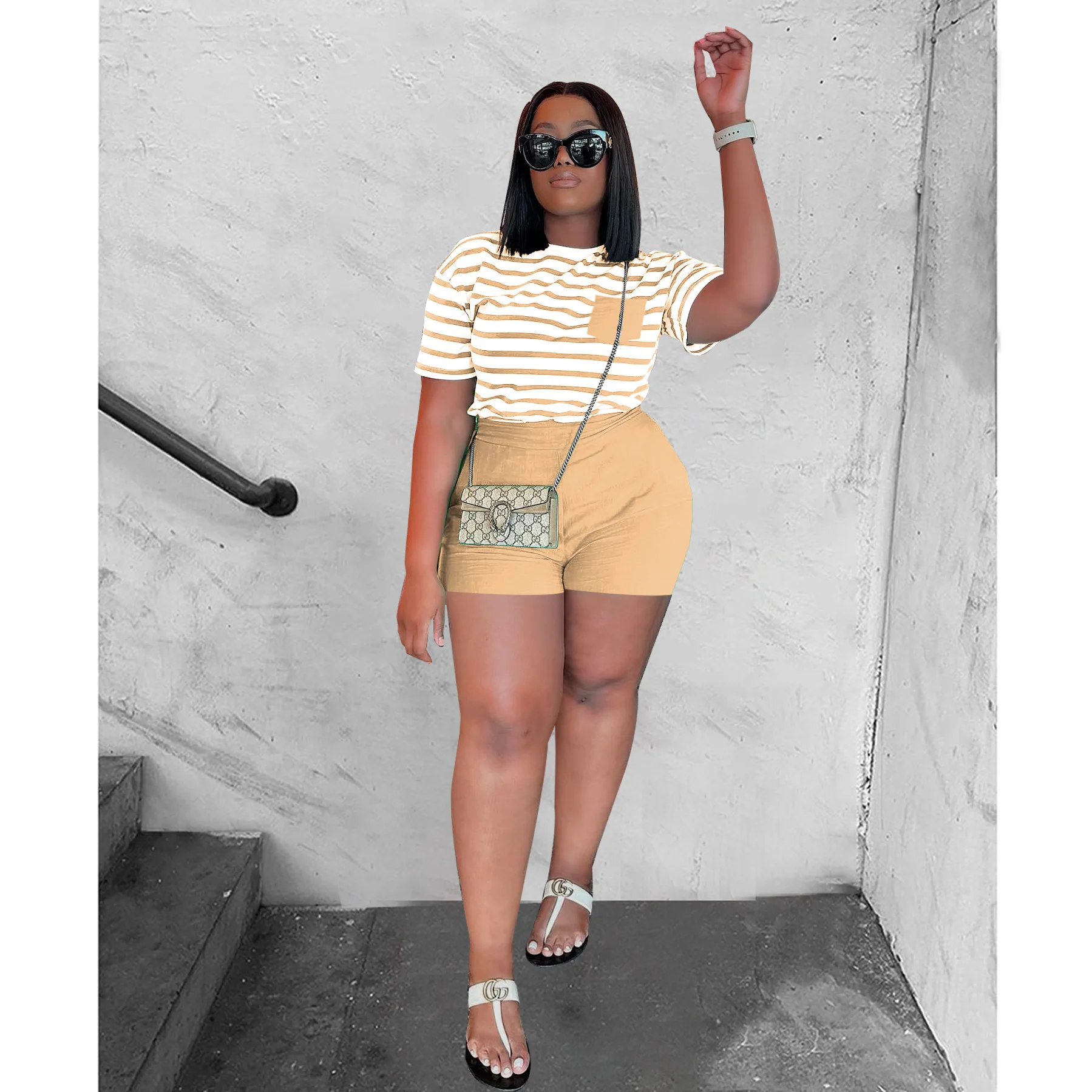1 review for Prowow Casual Women Two Piece Suits Striped Print T-shirt Shorts Summer Tracksuits 2023 New Female Clothing Sporty Outfits