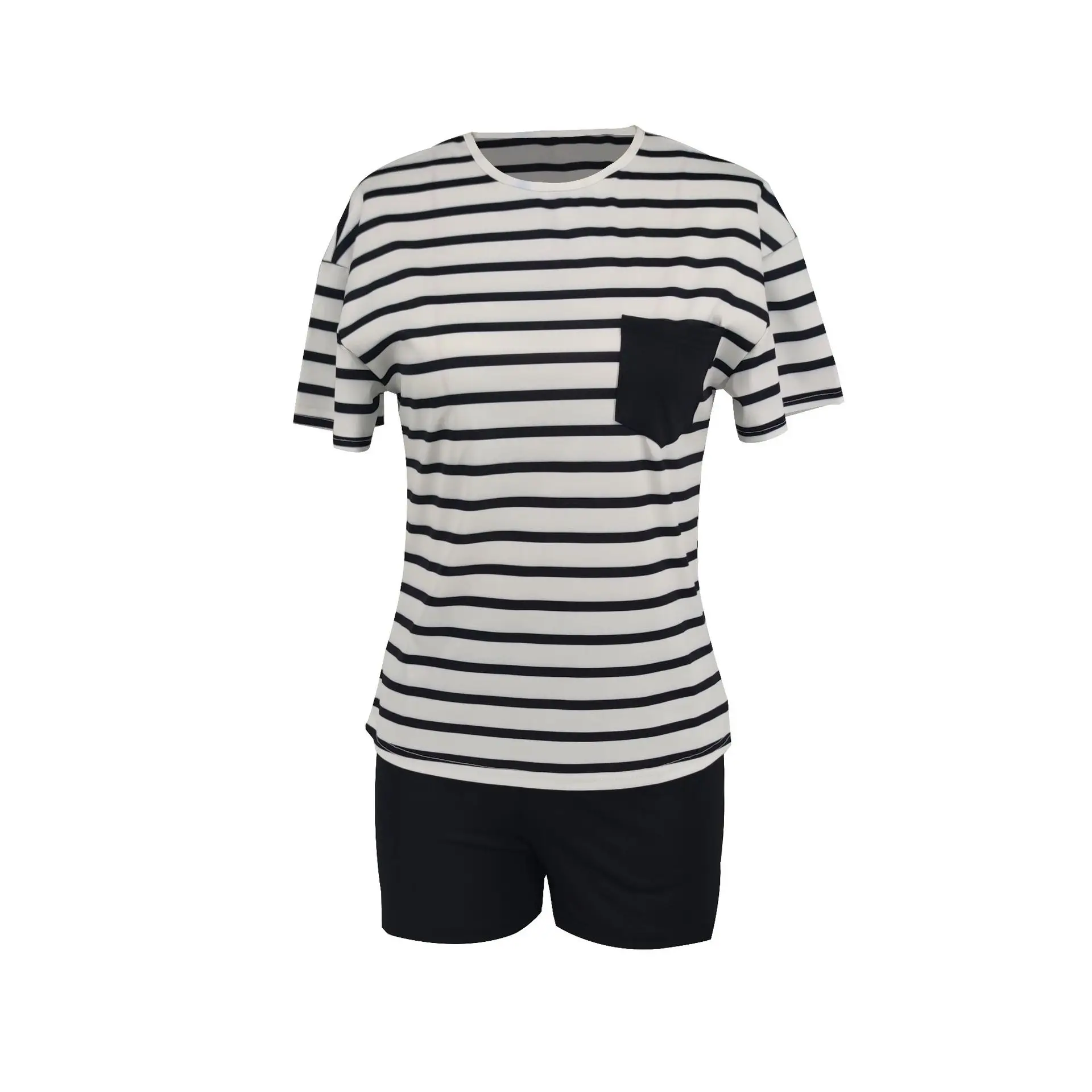Specification: Prowow Casual Women Two Piece Suits Striped Print T-shirt Shorts Summer Tracksuits 2023 New Female Clothing Sporty Outfits