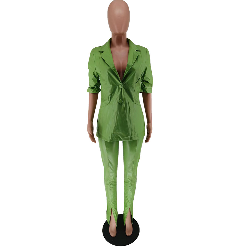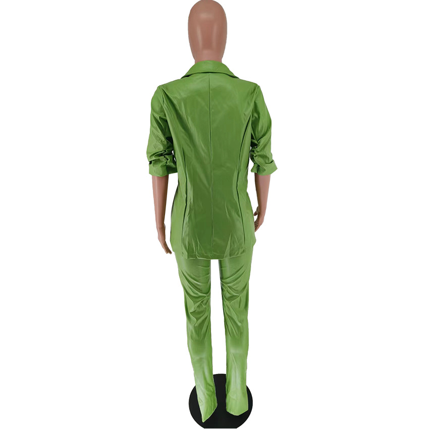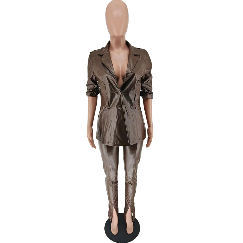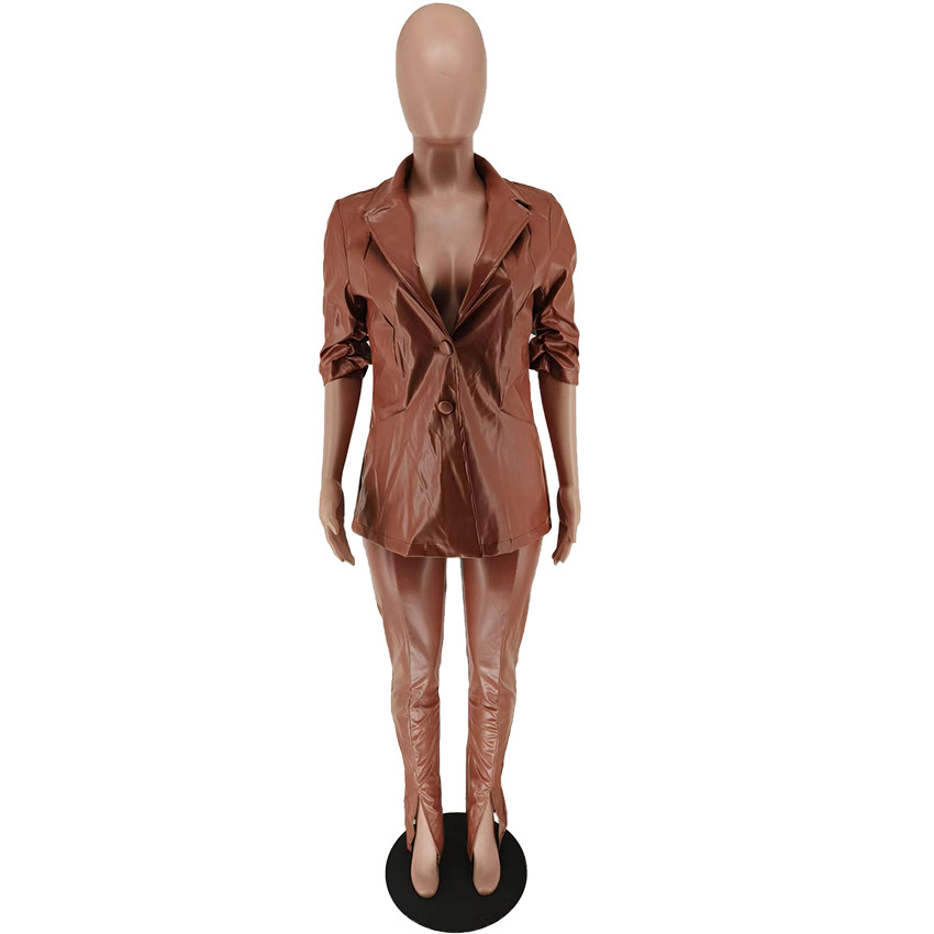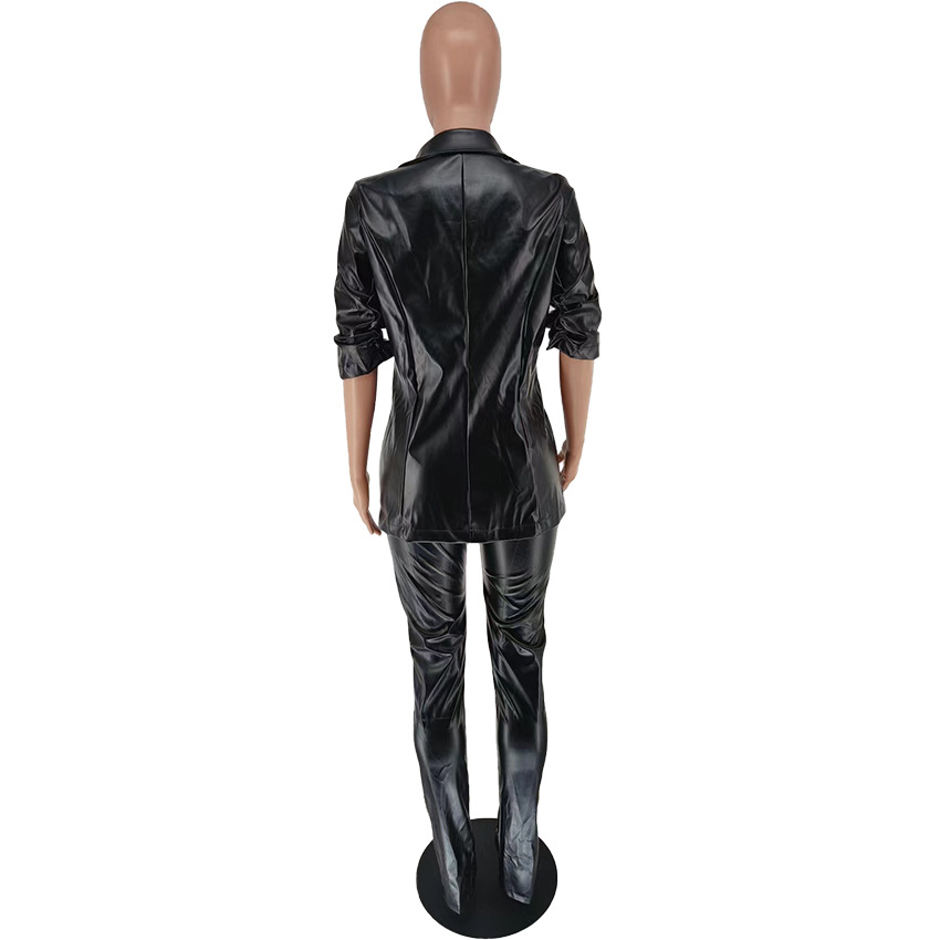 Specification: PU Leather Office Lady Women 2 Piece Set Notch Neck Blazer High Waist Pants Matching Set 2022 Autumn Work Wear Slim Tracksuits