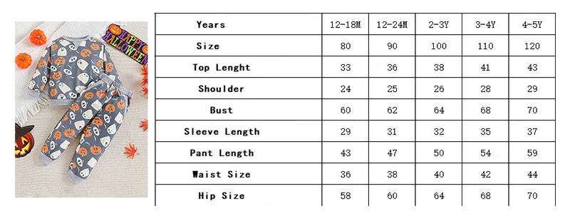 Specification: Qunq 2023 Autumn New Boy Halloween Costume Print Long Sleeve Pullover Top + Pants 2 Pieces Set Casual Kids Clothes Age 1T-3T