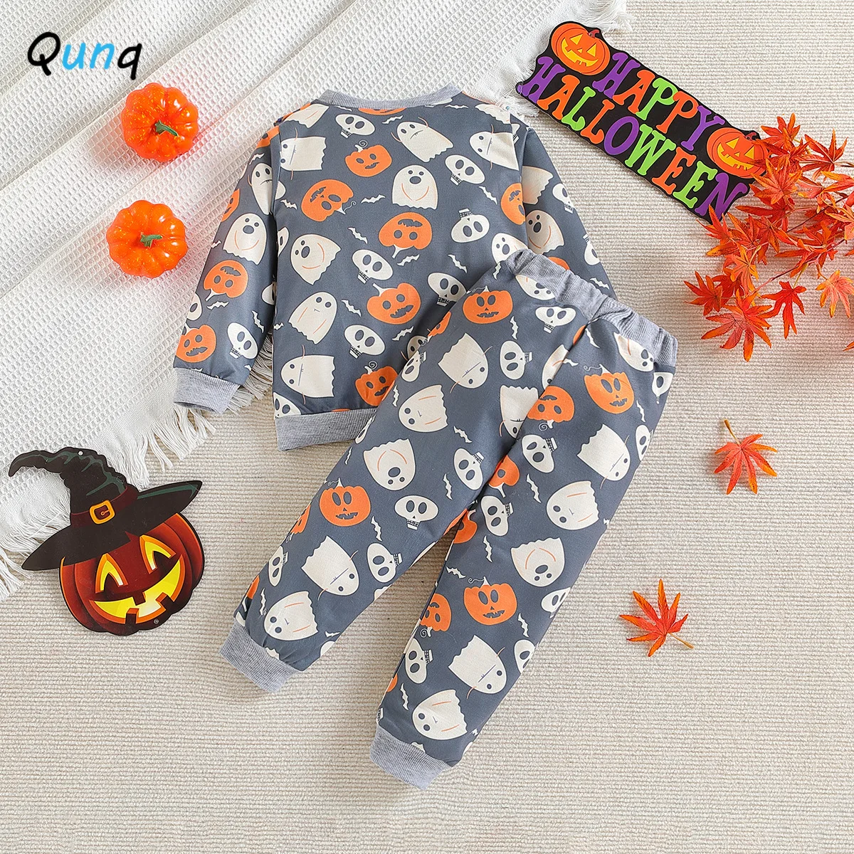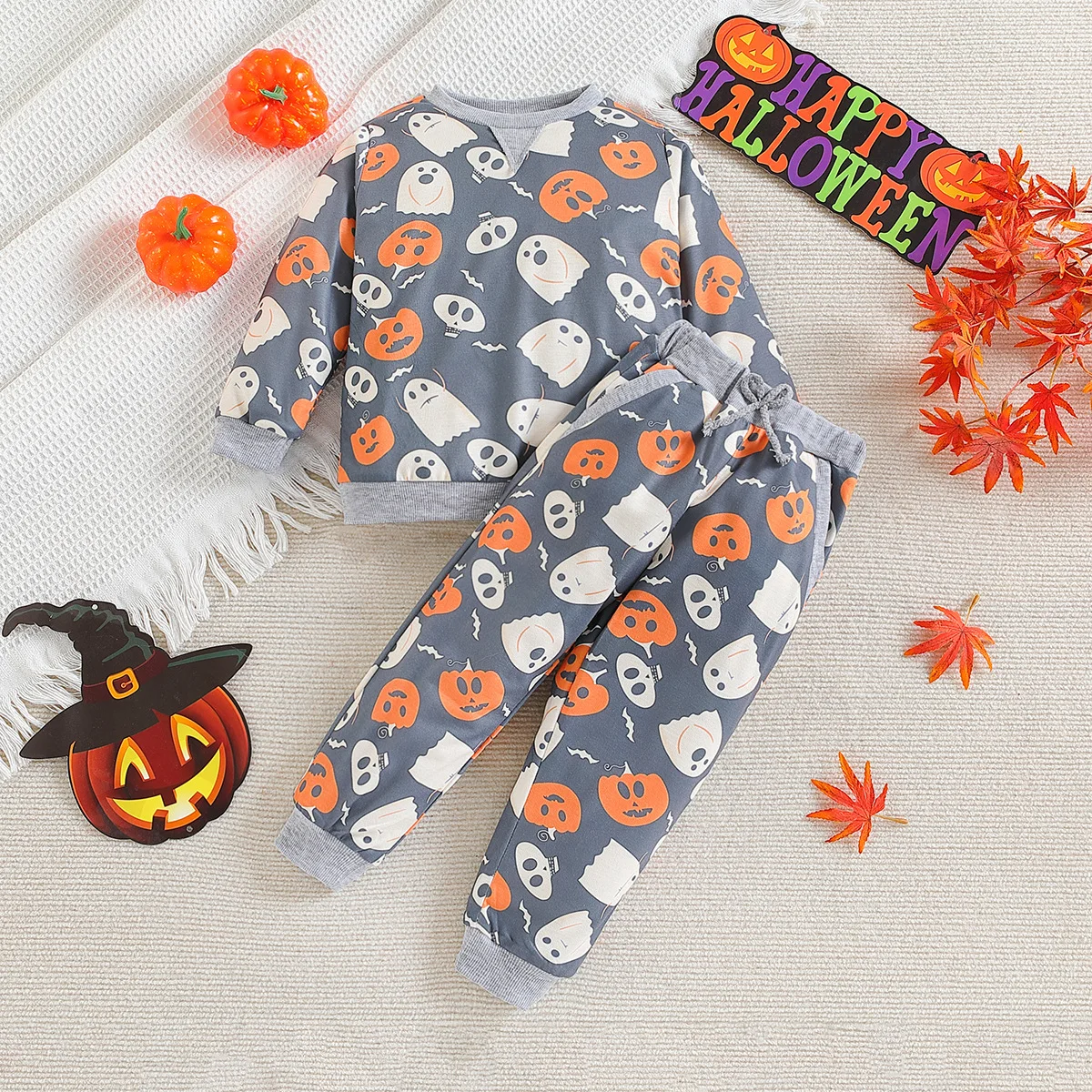 Qunq 2023 Autumn New Boy Halloween Costume Print Long Sleeve Pullover Top + Pants 2 Pieces Set Casual Kids Clothes Age 1T-3T