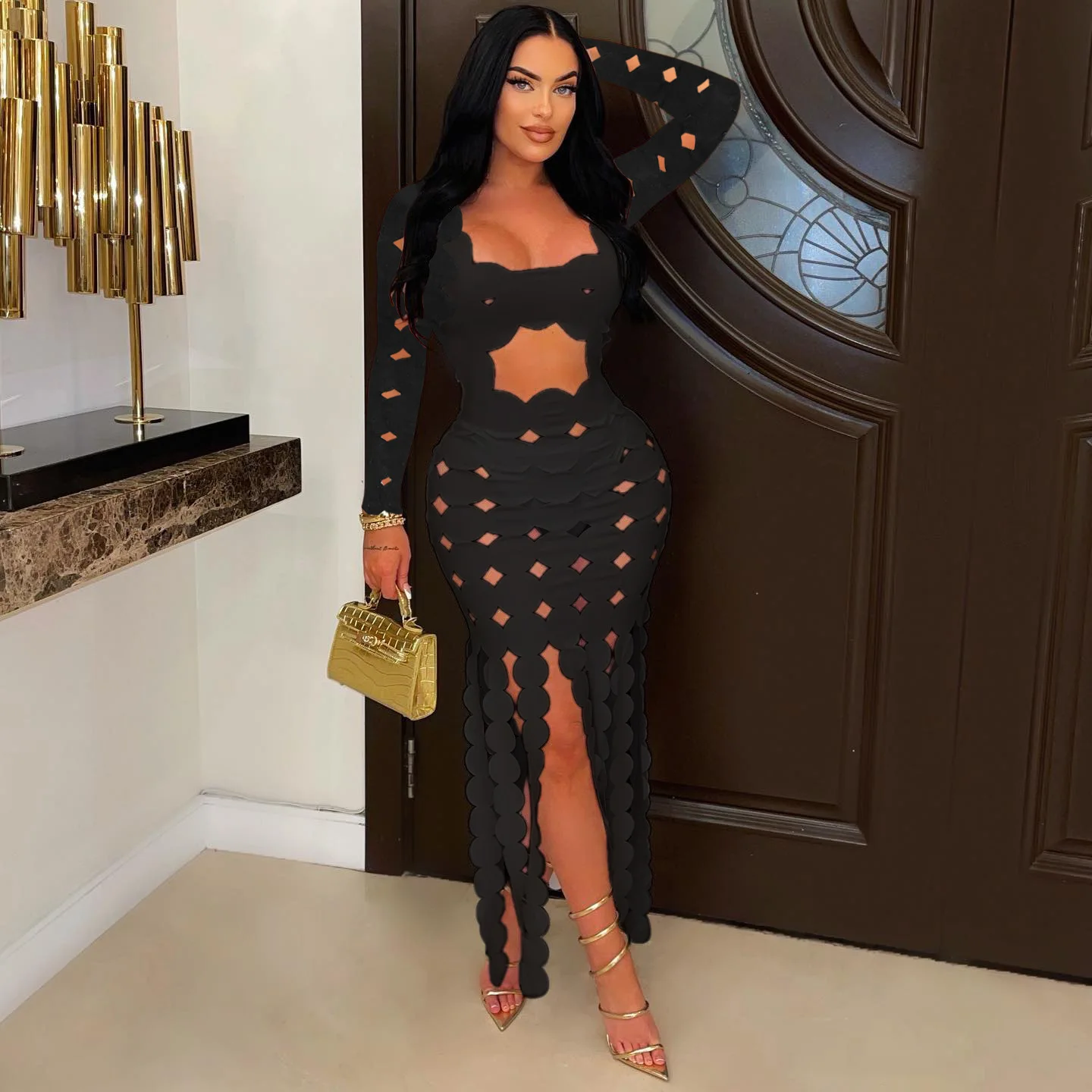 Specification: Sexy Hollow Out Backless Long Dres Women See Through Long Sleeve Party Dresses Autumn Spring Night Clubwear Tassel Sundress 2023