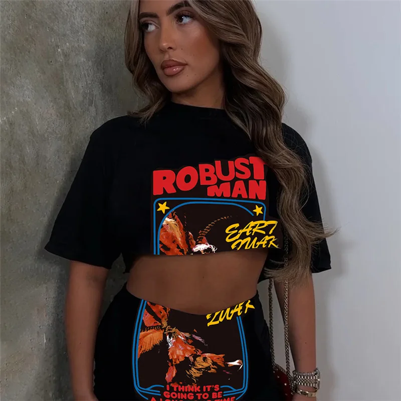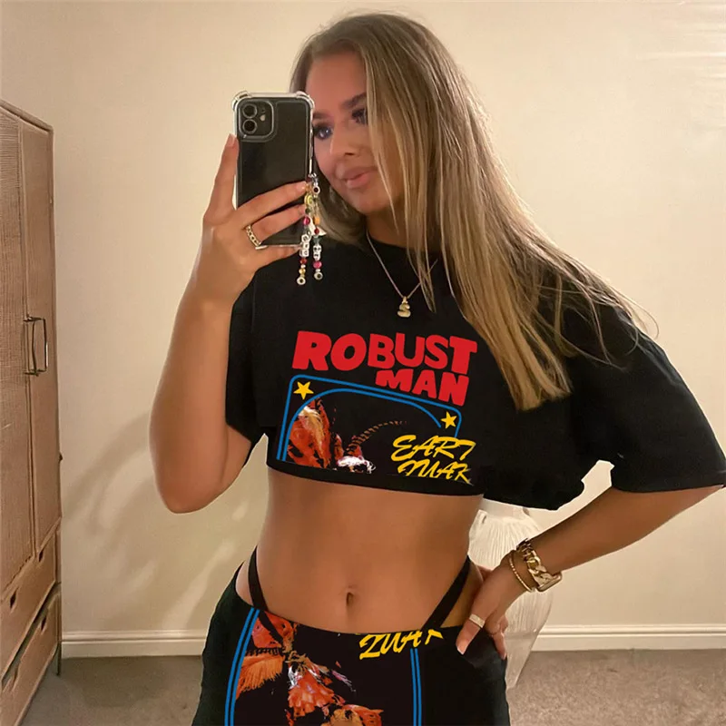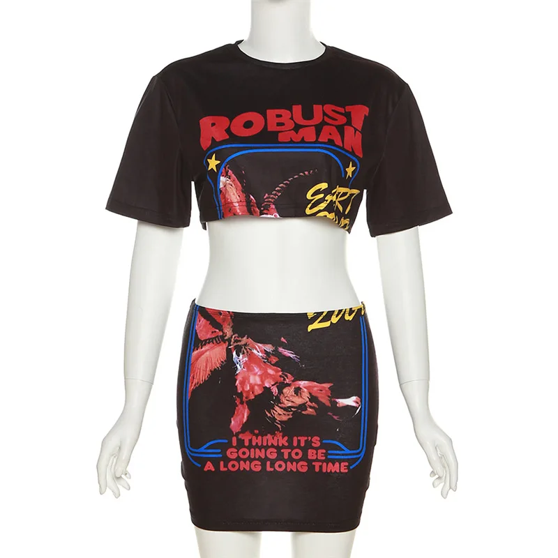 Specification: Street Style Letter Print Two Piece Set Women Summer Short Sleeve T-shirts Crop Tops Bodycon Mini Skirts Fashion Casual Suits