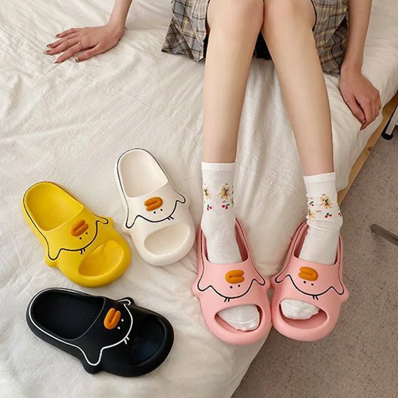 Summer Home Women Men’s Slippers Indoor Girls Boy Thick Non-Slip Soft Couple Cartoon Flip Flops Duck Beach Sandals Men Slippers