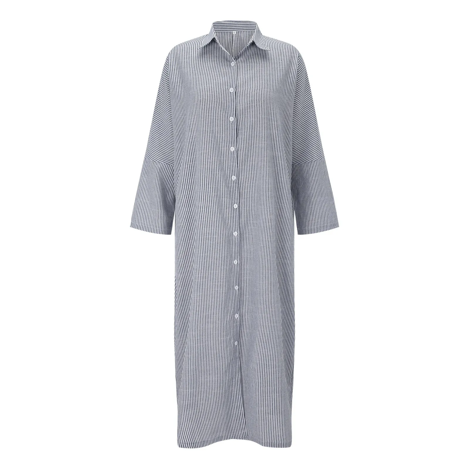 Specification: Summer Outfits For Women 2023 Stripe Cotton Linen Shirt Lapel Dress Long Sleeve Casual Loose Maxi Dresses Plus Size