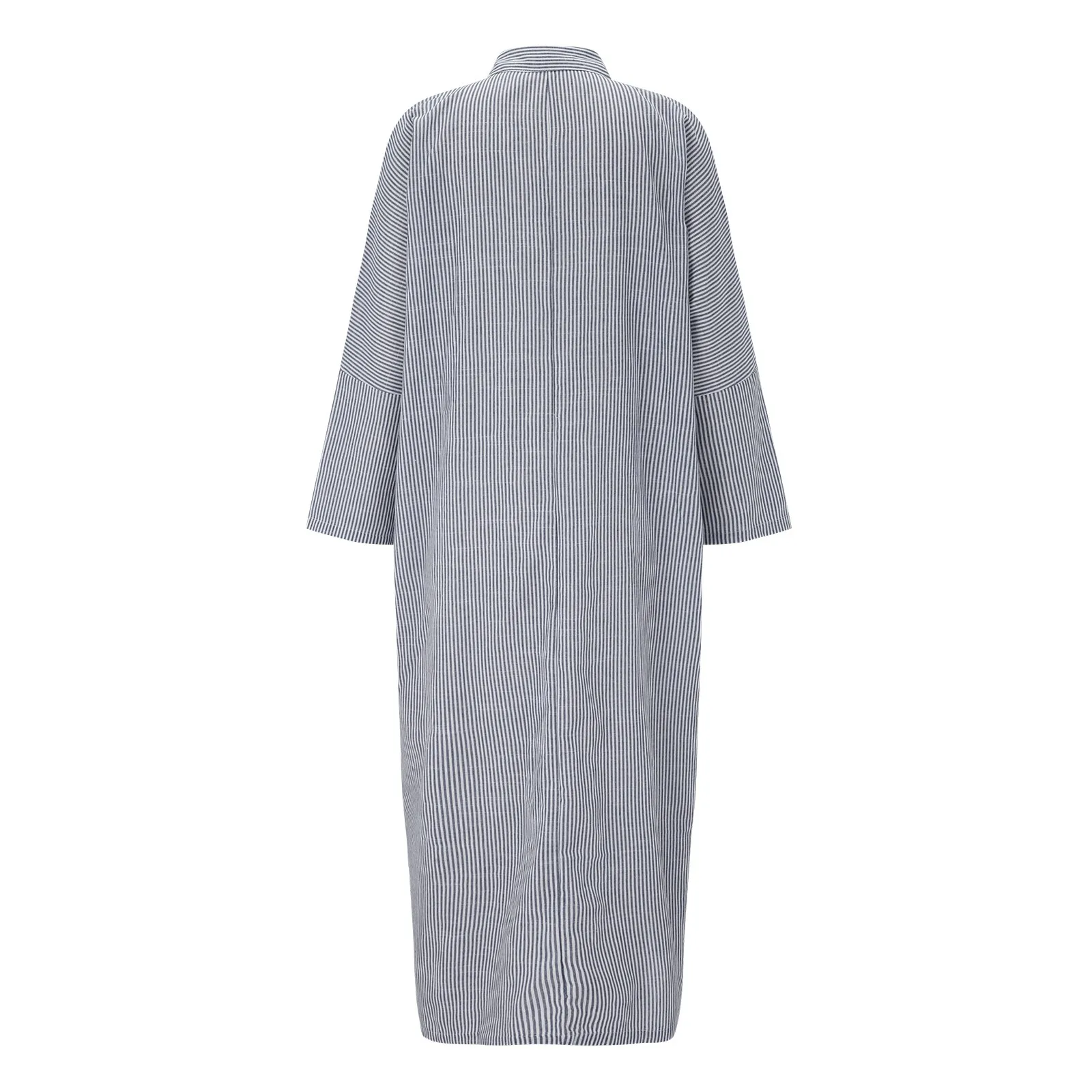 Women Stripe Cotton And Linen Shirt Dress Casual Loose Maxi Dresses