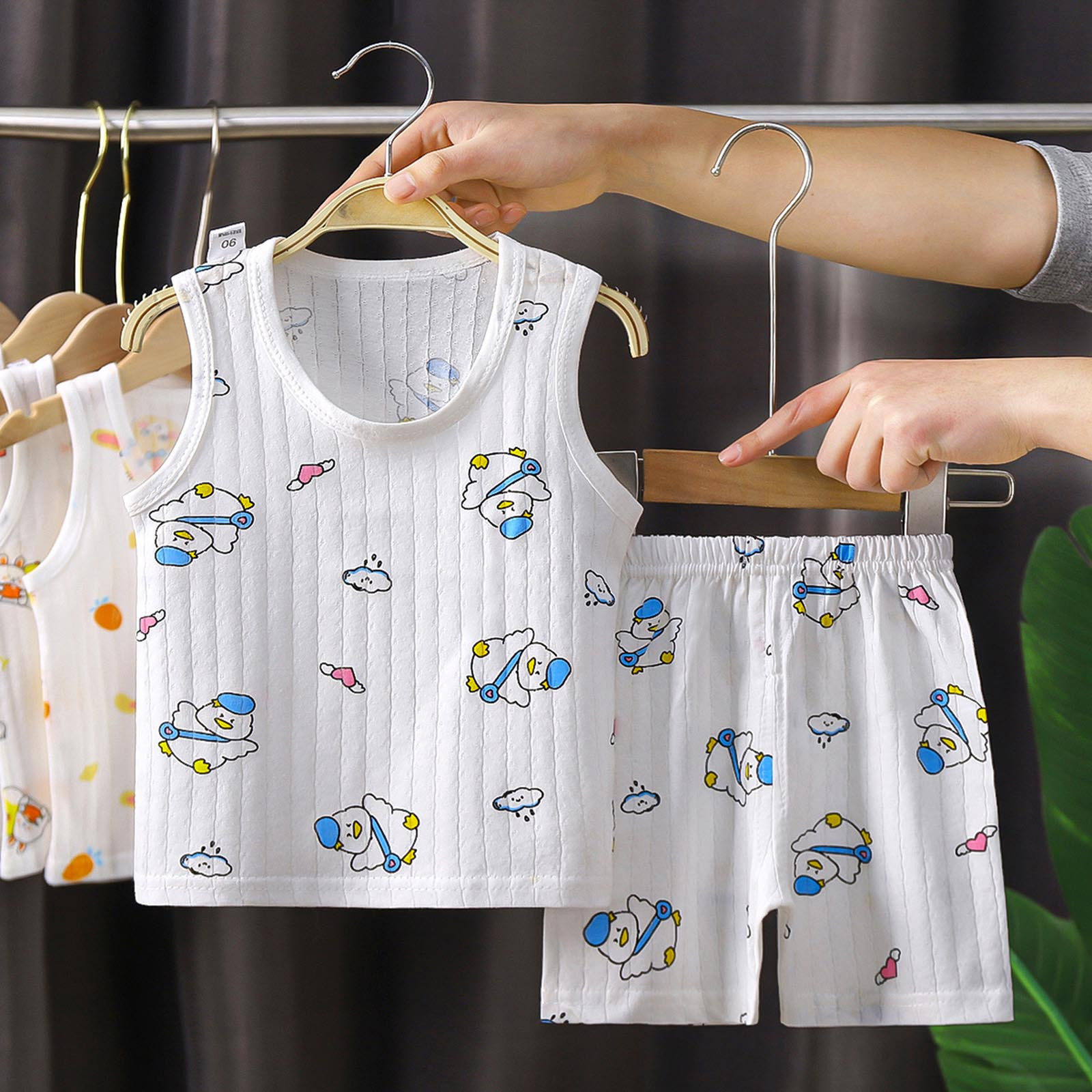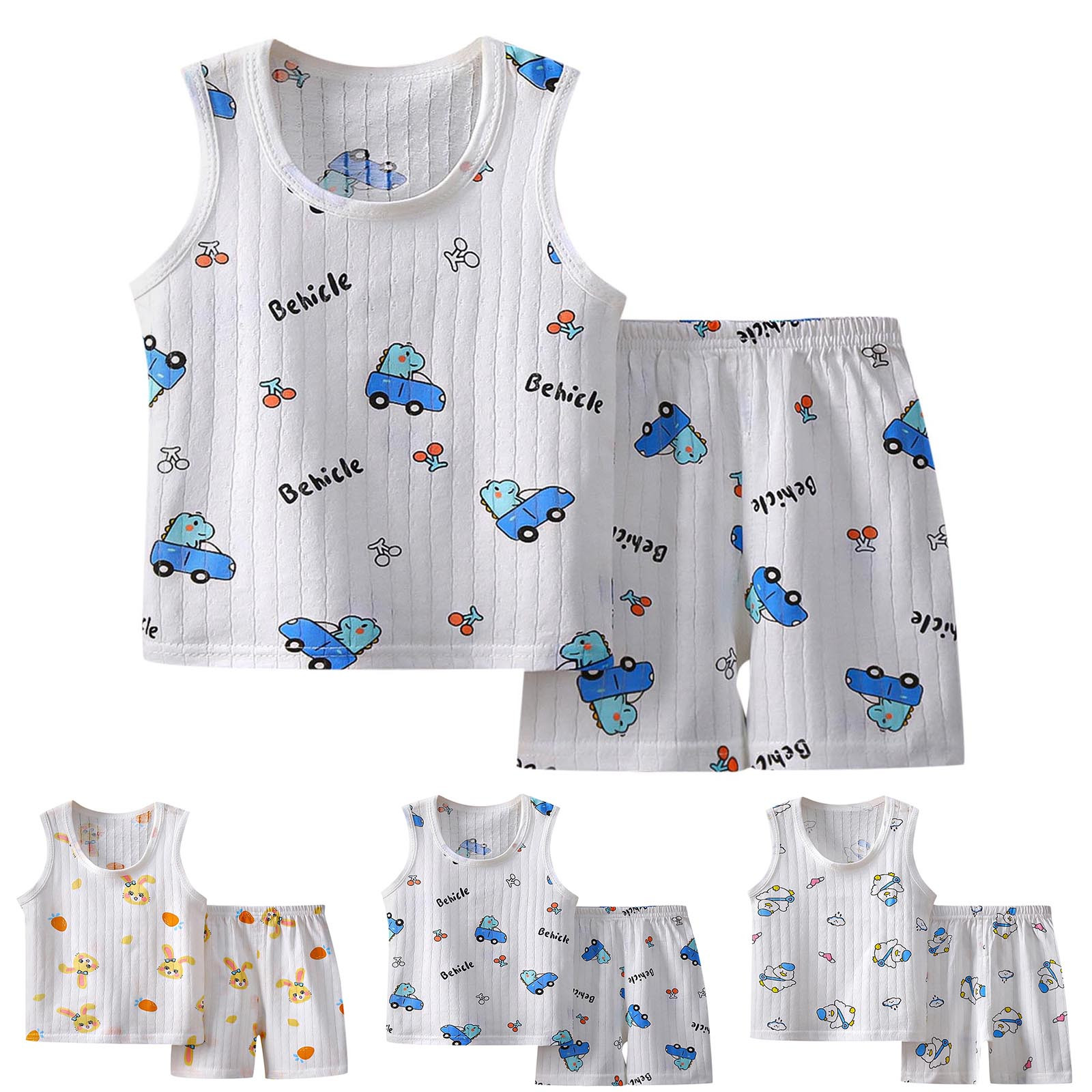 Toddler Boys Girls Sleeveless Clothing Kids Pajamas Sleepwear Cartoon Tops Shorts 2pcs Outfits Baby Boy Outfit