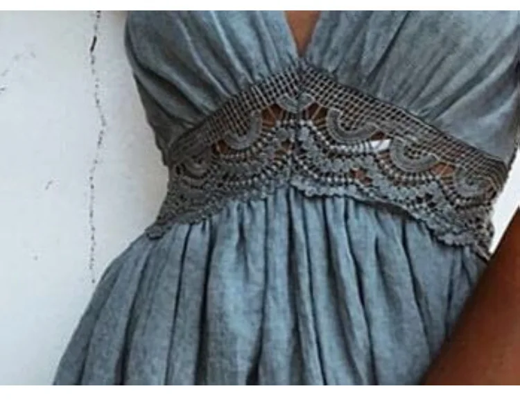 Be the first to review “V Neck Sling Solid Color Open Back Large Swing Dress Women Clothing Sexy High Waist Loose Lace A Line Short Skirts Street Casual”
