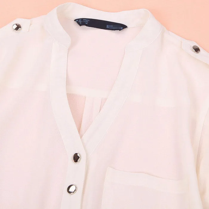 Specification: Women Blouse Button V Neck Spring Summer V-neck Chiffon fabric Long Sleeve Casual Shirt Office Lady Elegant Blouse Shirt Tops P5