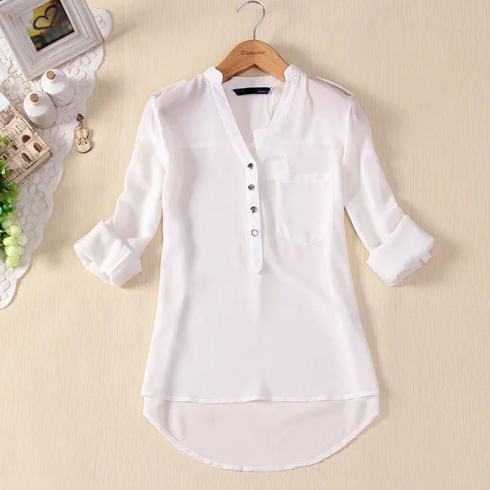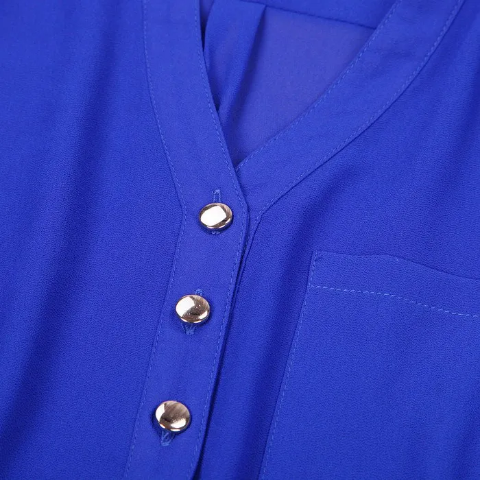 Women Blouse Button V Neck Spring Summer V-neck Chiffon fabric Long Sleeve Casual Shirt Office Lady Elegant Blouse Shirt Tops P5