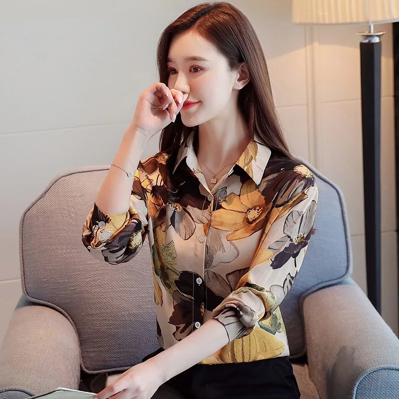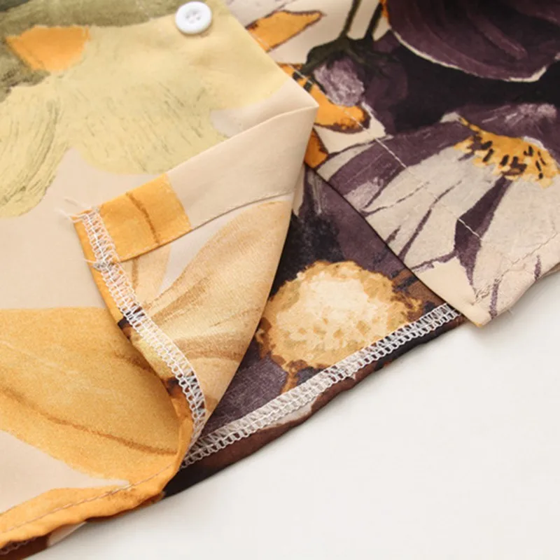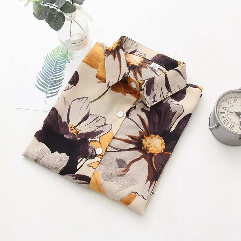 Women Casual Loose Long Sleeve Blouse Spring Vintage Floral Print Shirt Ladies Lapel Tops