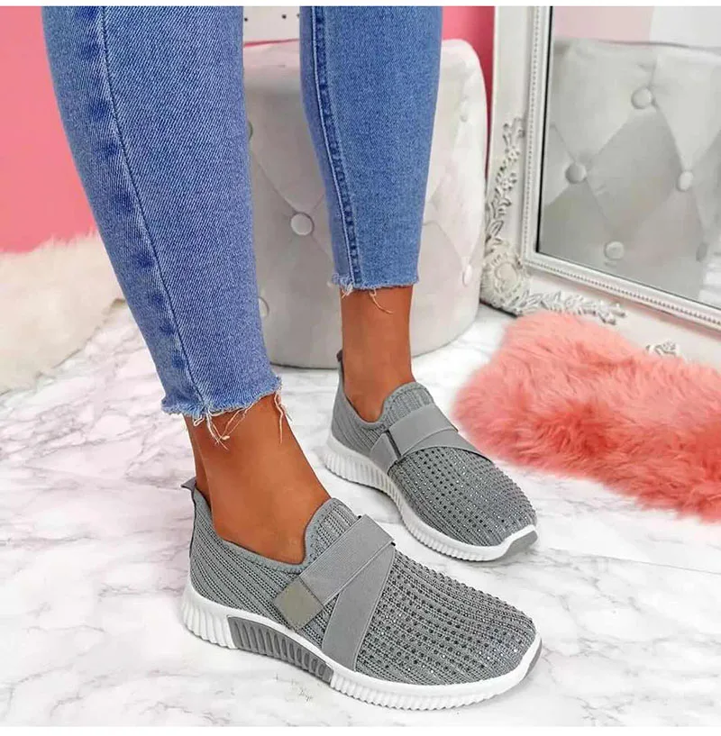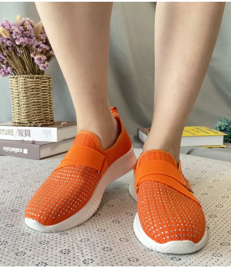 Women Crystal Sneakers Woman Slip On Flat Women’s Vulcanized Ladies Outdoor Mesh Breathable Female Casual Sport Shoes Plus Size
