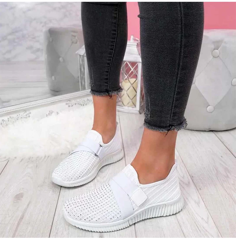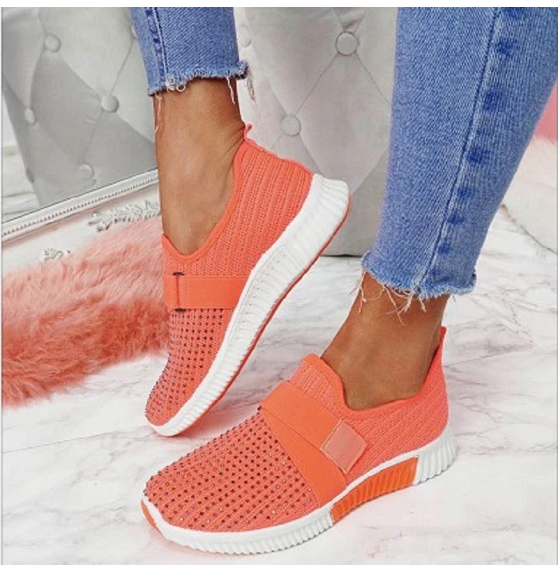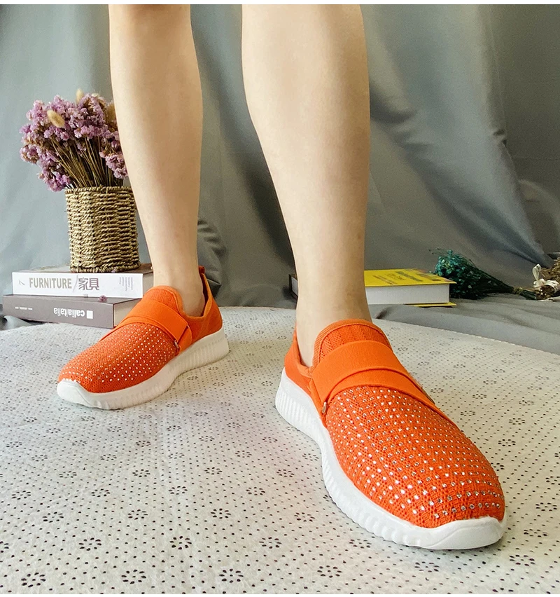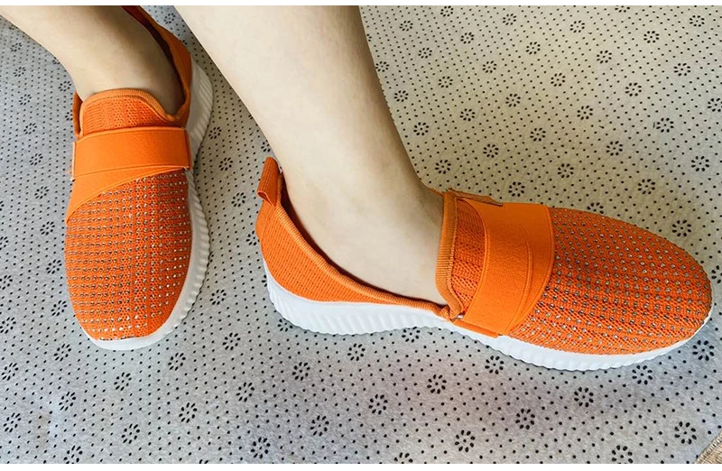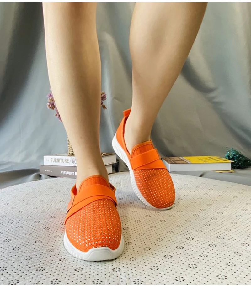 Specification: Women Crystal Sneakers Woman Slip On Flat Women’s Vulcanized Ladies Outdoor Mesh Breathable Female Casual Sport Shoes Plus Size