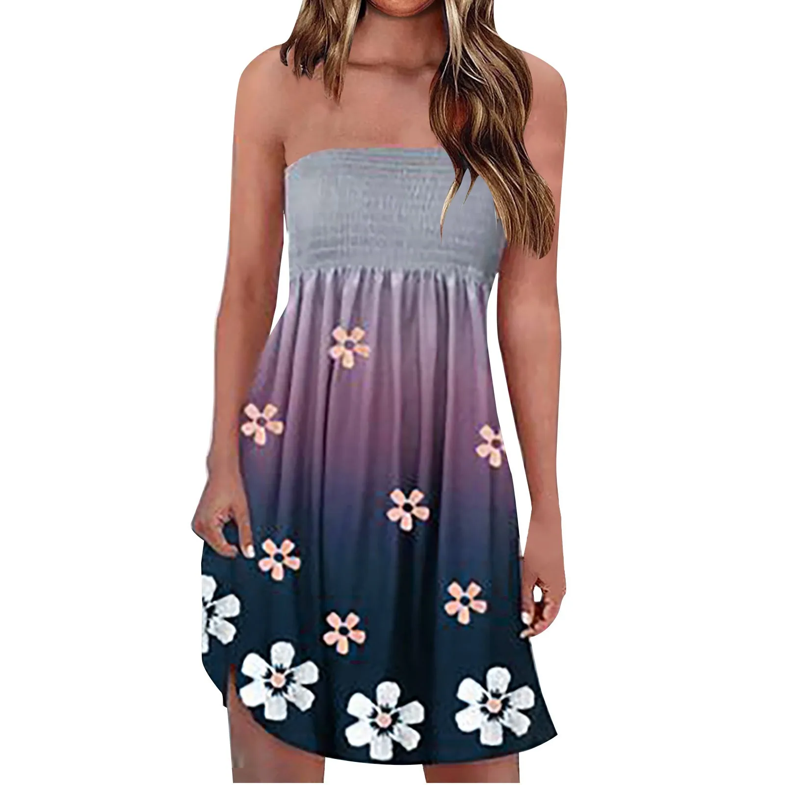 Women Sleeveless Summer Dresses For Women 2022 Wrap Chest Printed Beach Dress