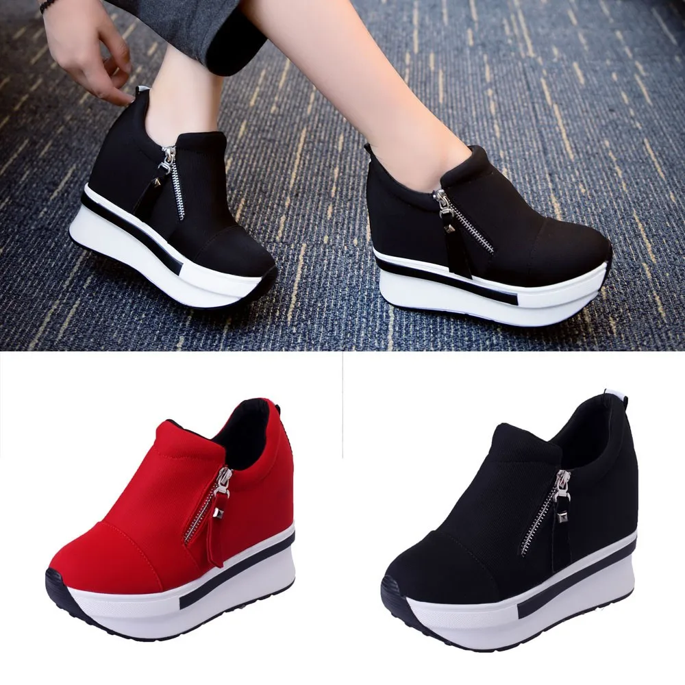 Specification: Women Invisible Wedge Sneaker Comfortable Platform Shoes Heels Black Canvas Shoes Red Casual Shoes Platform Sneakers Women Shoes