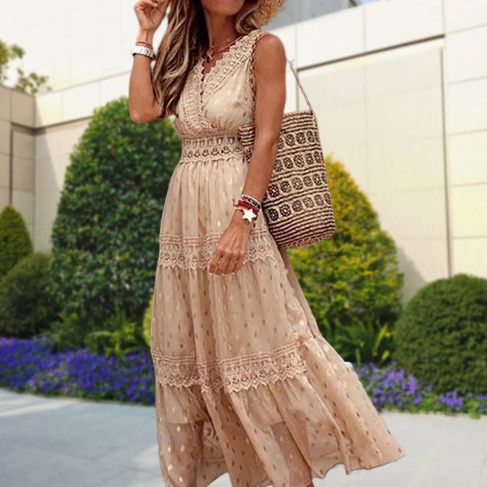 Sleeveless Chiffon Dress Bohemian Style Elegant Classic Long Dress Lightweight Breathable Slim Fit Maxi Dress for Party Vacation Specification: Size: Note: 1 x Deep V Neck Maxi Dress
