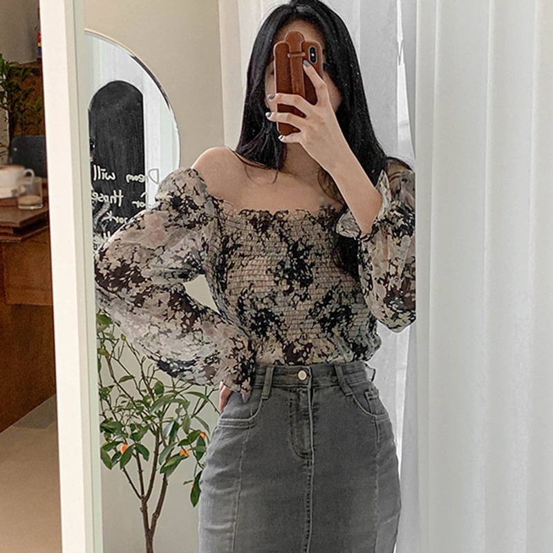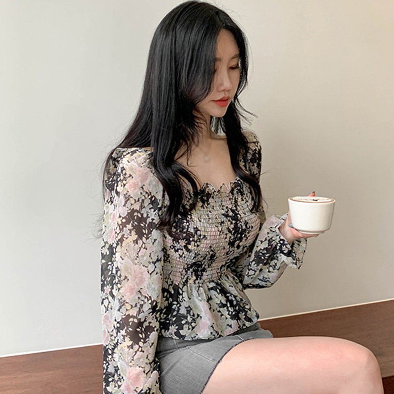 Specification: Women’s Blouses Floral Print Chiffon Shirt Spring Autumn Fashion Square Collar Sexy Sweet Long Sleeves Chiffon Shirts