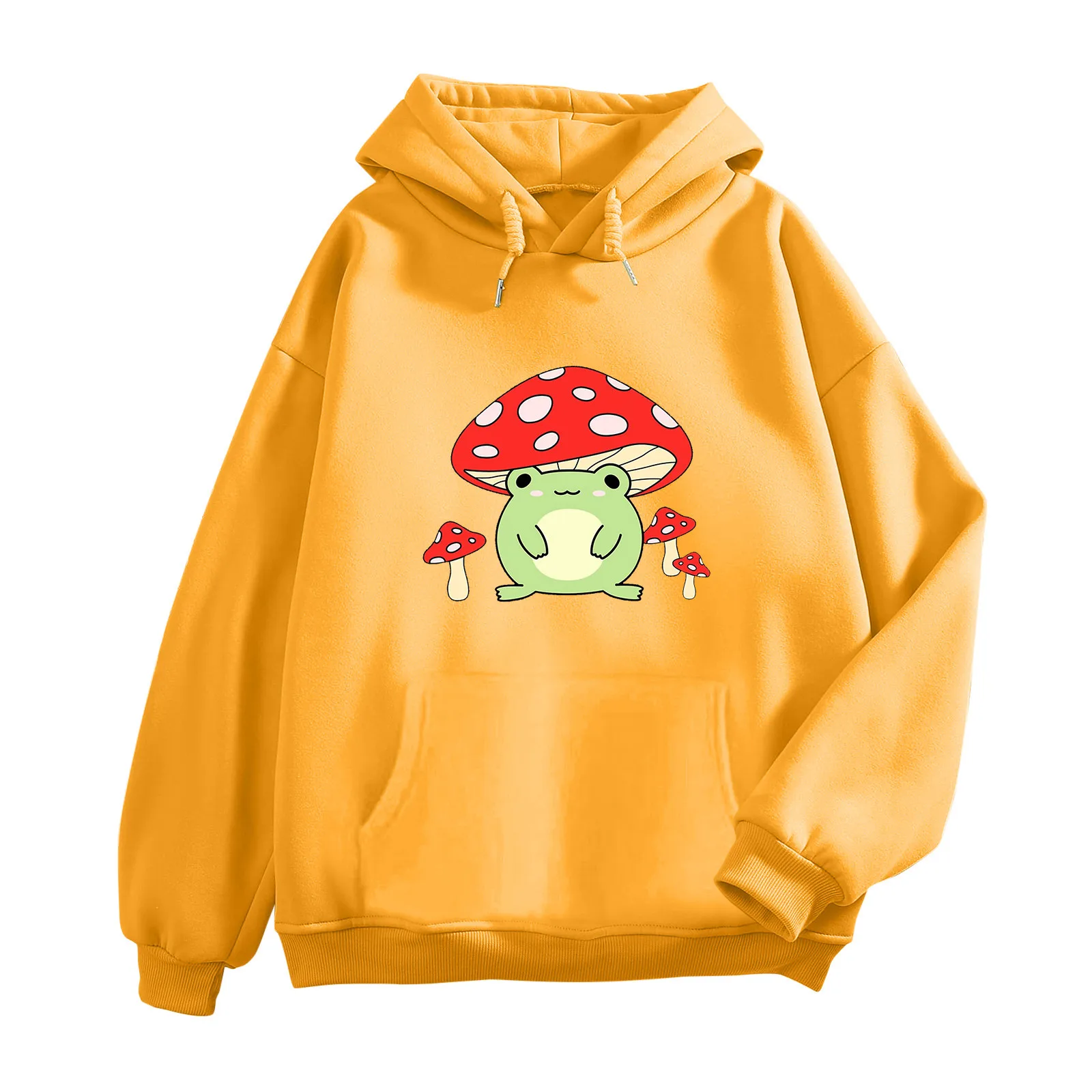 Womens Cute Frog Sweatshirt Kawaii Mushroom Hoodie For Teen Girls Clothes Hoodie Long Sweatshirt Hoodie