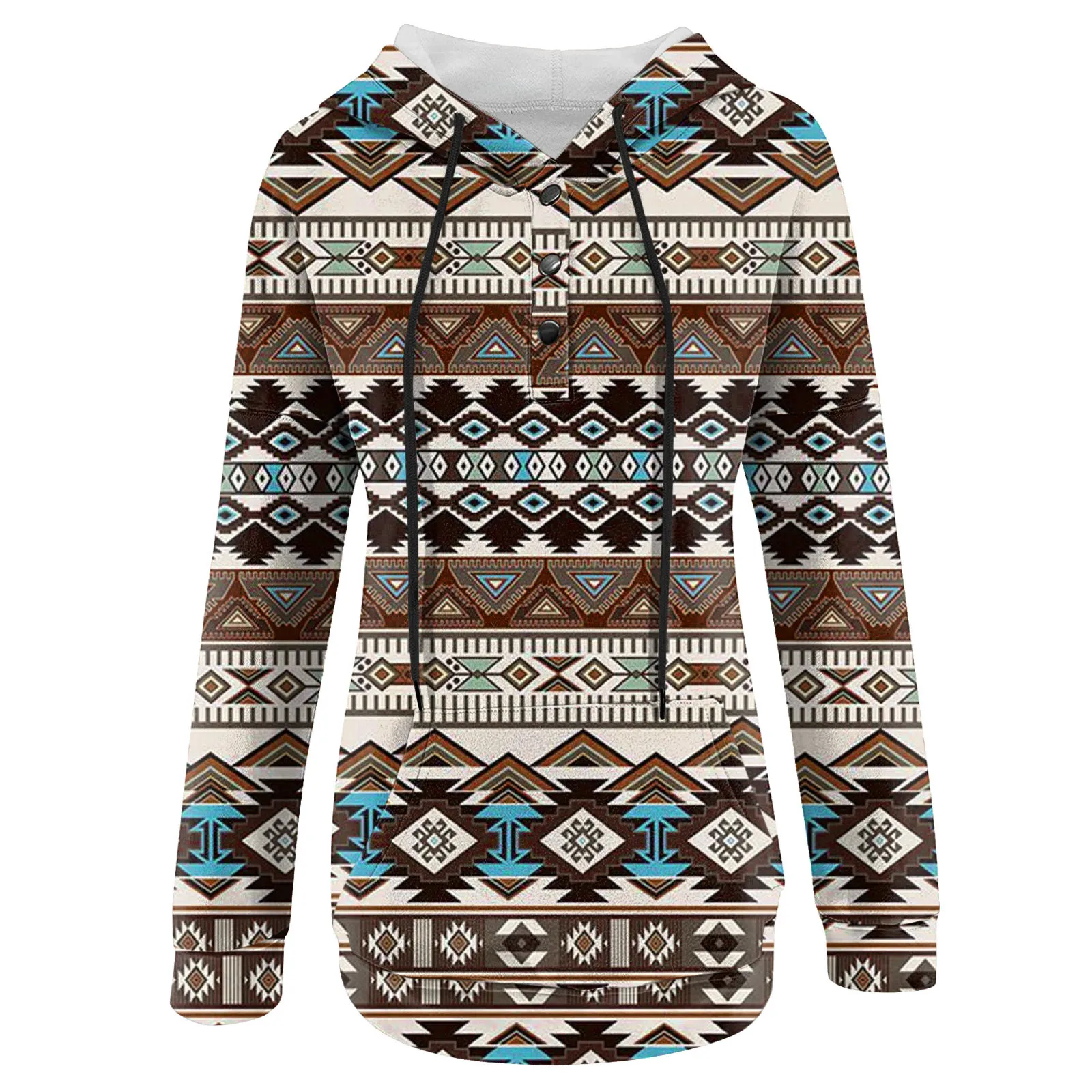 Specification: Womens Fashion Sweatshirt Ethnic Print Boho Western Retro Pattern Hoodie Pullover Button Hooded Jacket Woman Winter Clothes