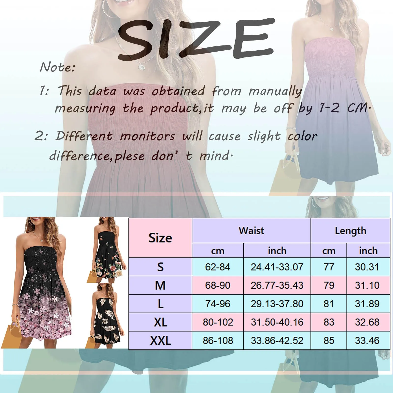 Specification: Women’s Summer Strapless Mini Dresses Gradient Smocked Casual Beach Tube Top Dress Cover Ups For Swimwear Bandeau Sundress 2023