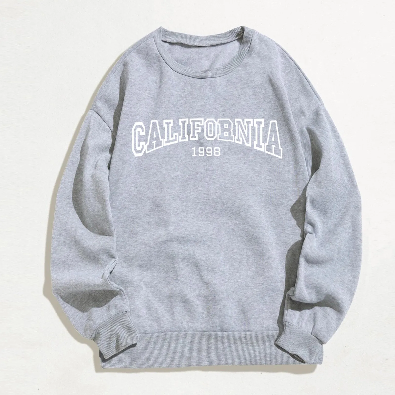 Women’s Sweatshirt Fashion California Letter Print Brown Pullover O Neck Long-sleeve Sweatshirts Autumn Winter Jumper Tops Y2k