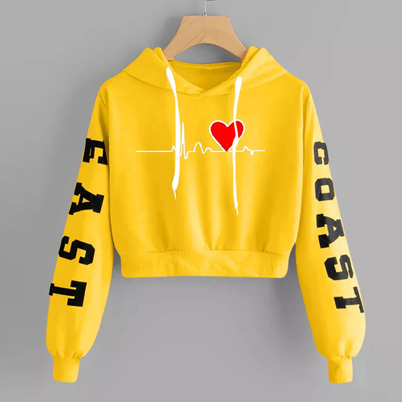 Specification: Y2K Letter Heart Print 90s Hoodie Woman Sweatshirt R Print Long Sleeve Short Tops Round Neck Sweatshirt Hooded Casual Daily Wear