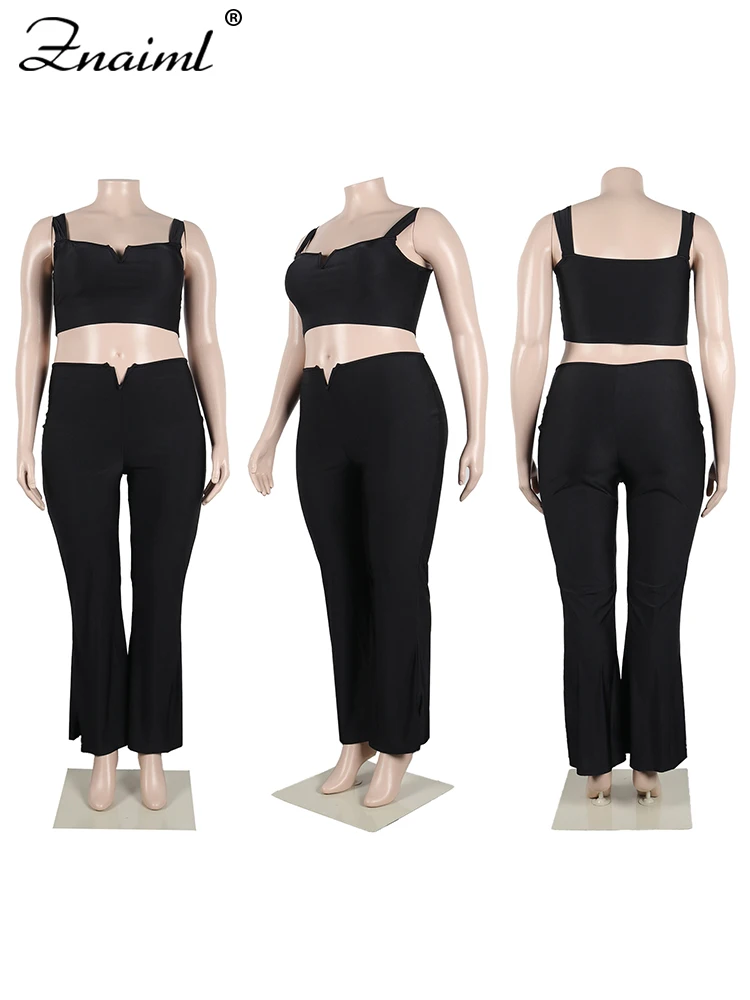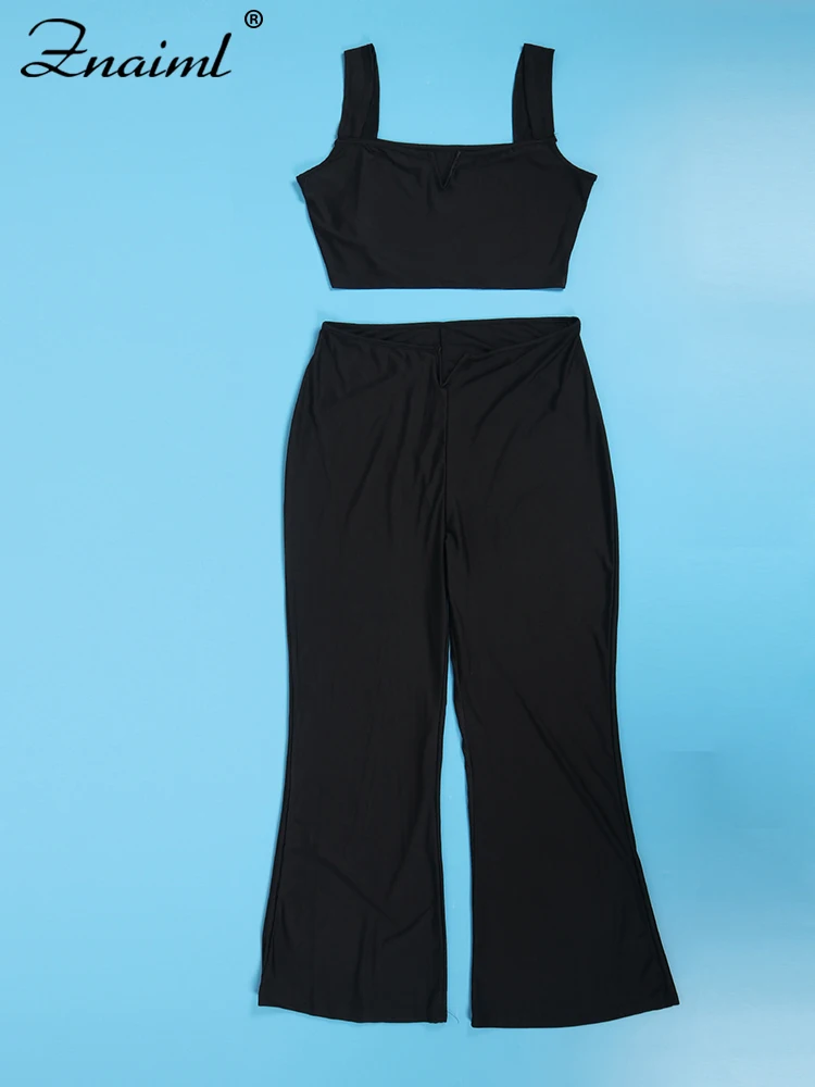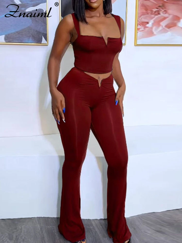 Znaiml Sexy Birthday Outfits Clubwear Spaghetti Strap Crop Top and Flare Pants Two Piece Sets for Women Night Party Co Ord Suits