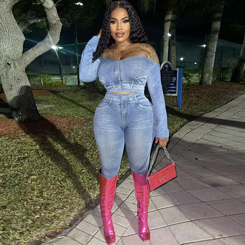 Znaiml Sexy Off the Shoulder Slash Neck Crop Top and Pencil Pants 2 Two Piece Sets Women Summer Outfit Bodycon Party Clubwear