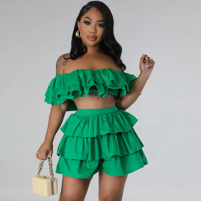 Znaiml Slash Neck Ruffles Crop Top and Shorts Two Piece Set Sexy Holiday Beach Summer Outfits for Women Clothing Party Clubwear